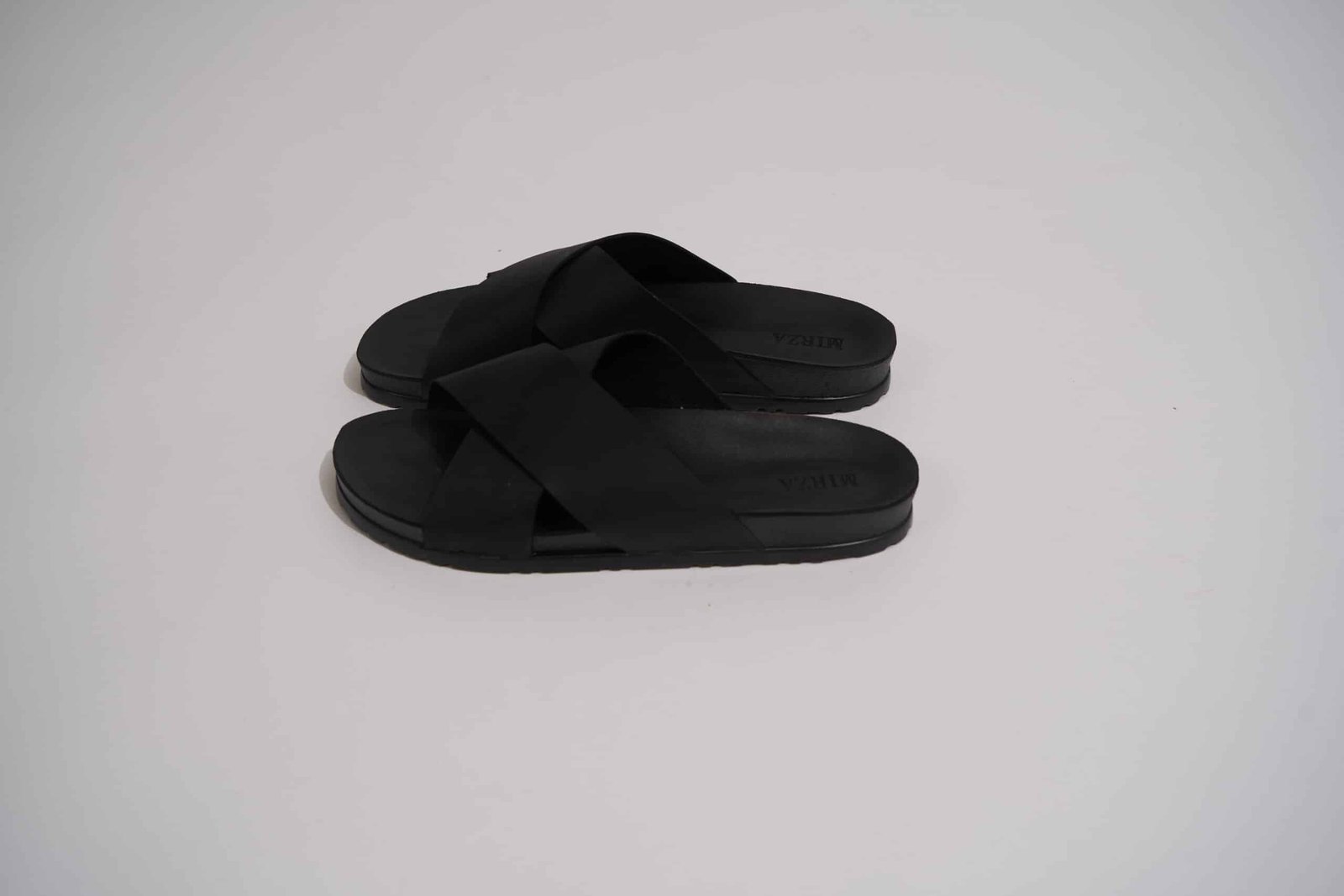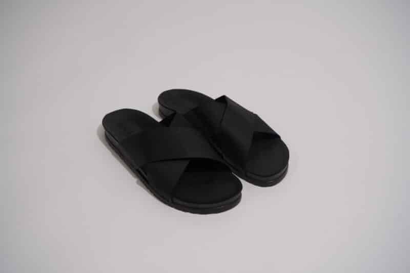 כפכף שחור עם רצועה מוצלבת בשילוב סוליה גבוהה