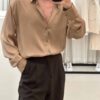 חולצה מכופתרת מבד סטן בתקסטורת פסים
