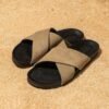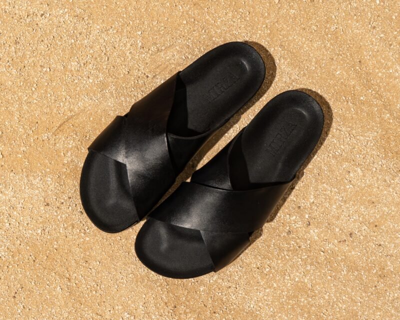 כפכף שחור עם רצועה מוצלבת בשילוב סוליה גבוהה
