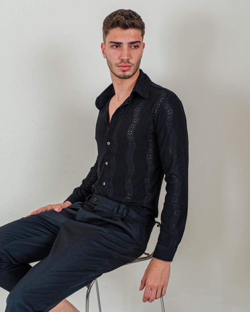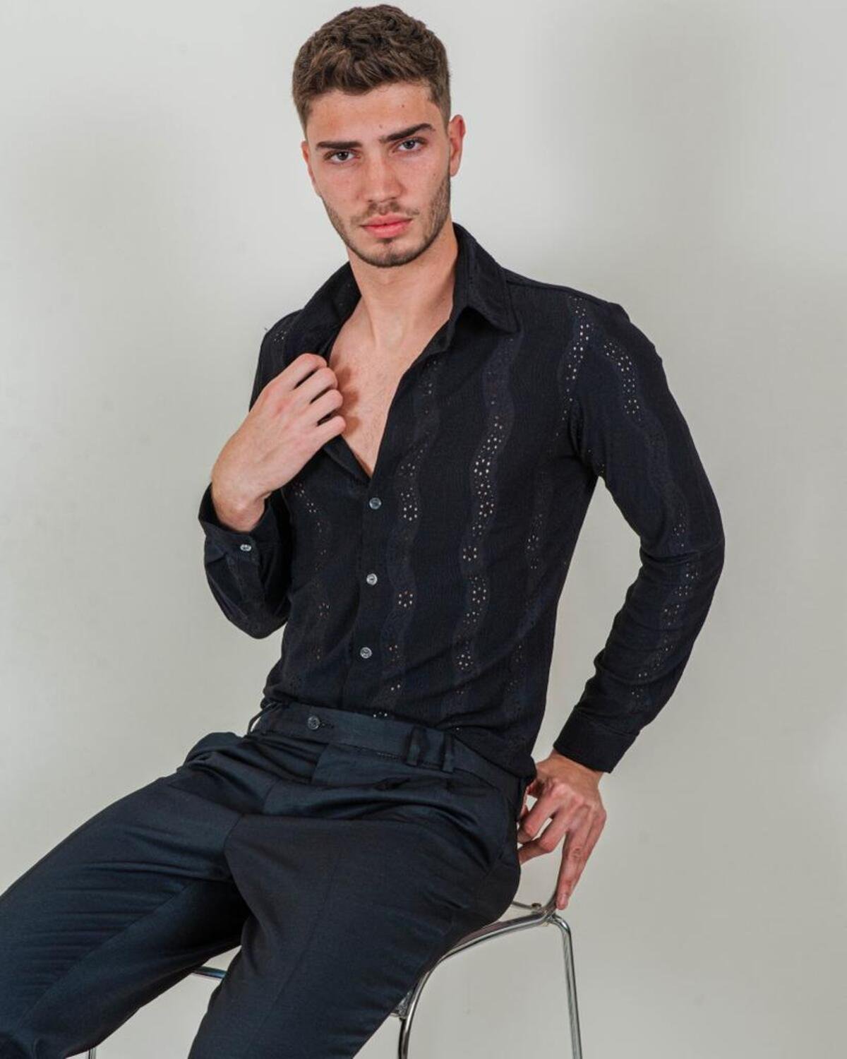חולצה מכופתרת שחורה בגזרת Slim fit צרה על הגוף (מידות קטנות יחסית)