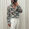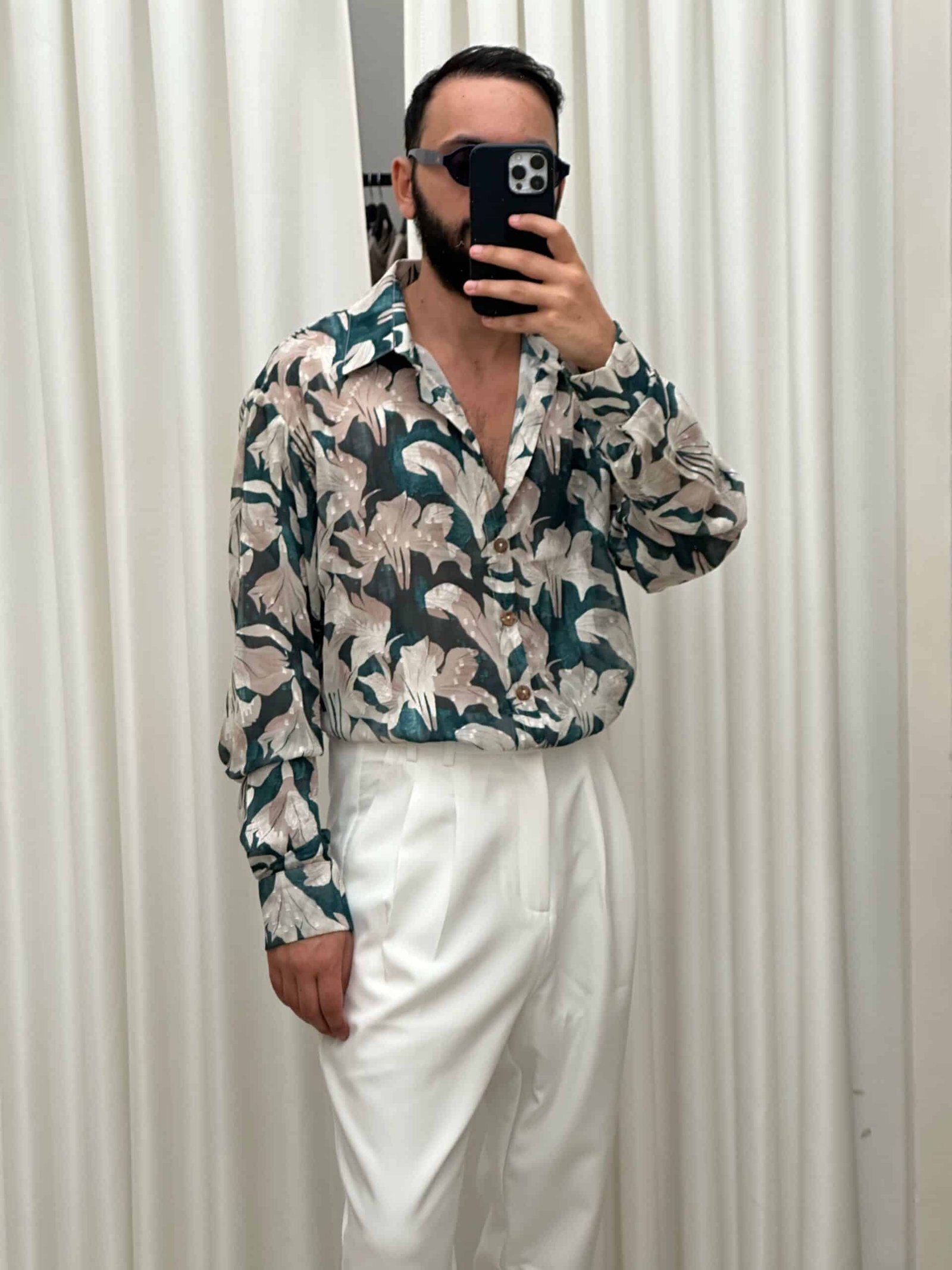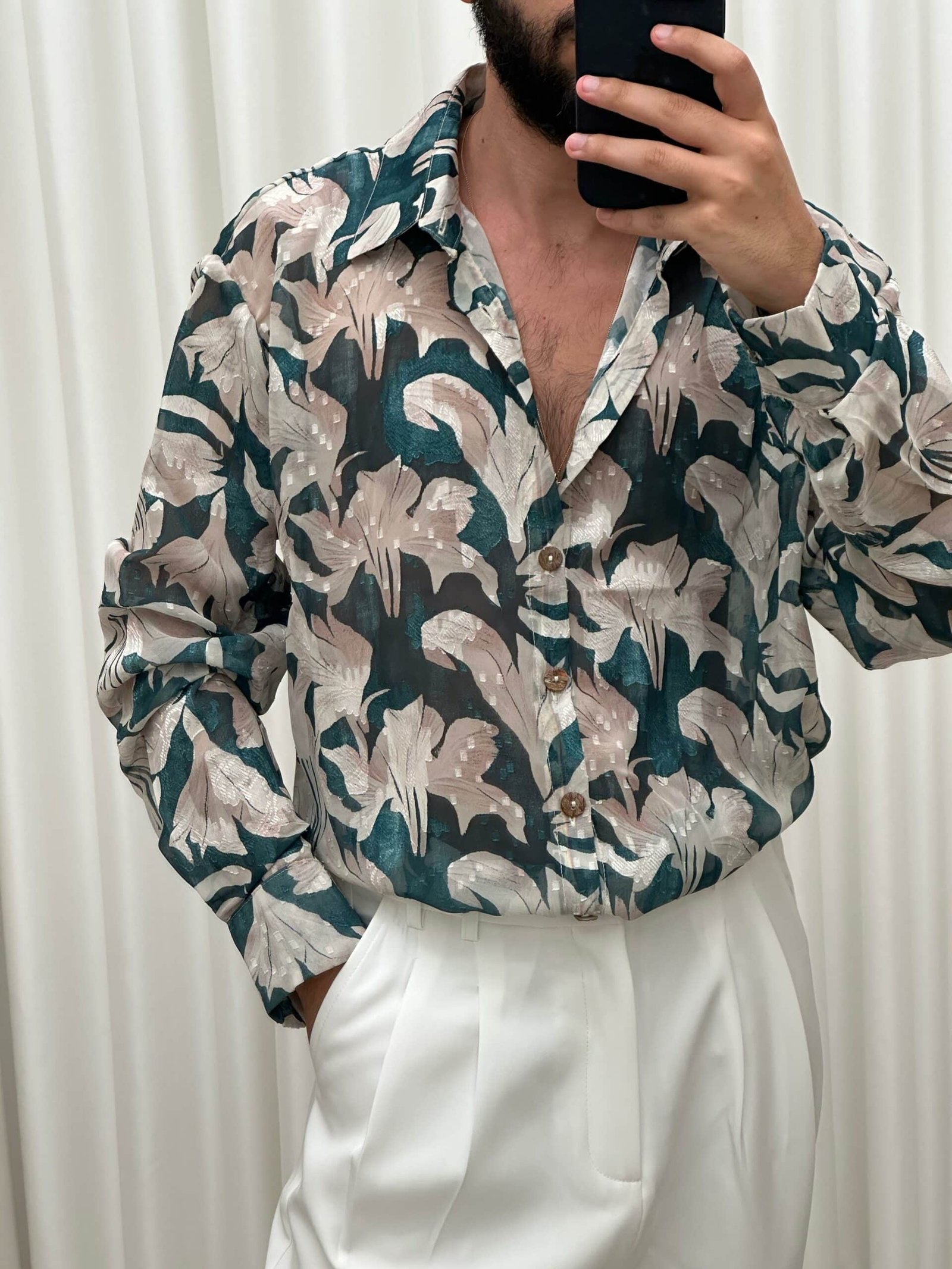 חולצה מכופתרת מבד שיפון בתקסטורת פרחים וכפתורי קוקוס