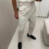 מכנס בגזרת Slim fit מבד פשתן עם טקסטורת פסים בסגנון וינטג’.