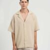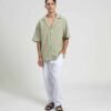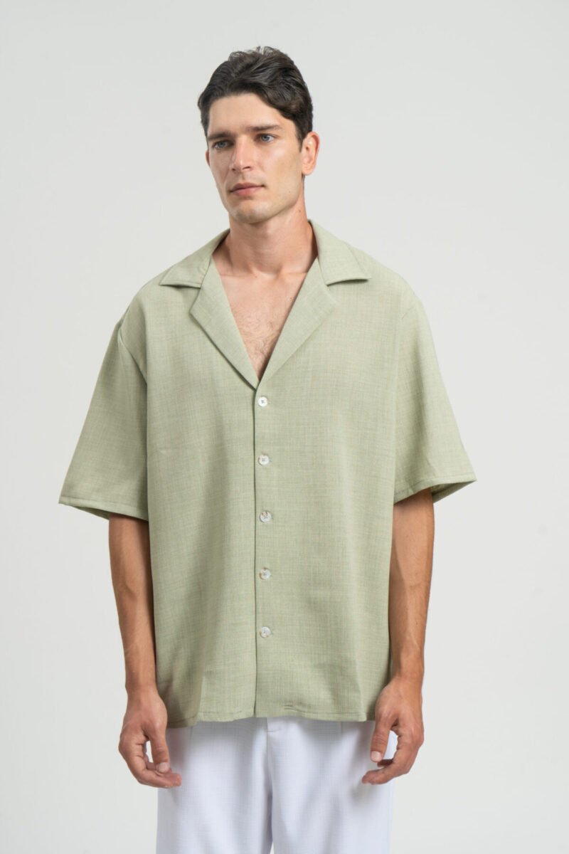 חולצת טרטל בגזרת אובר סייז בתקסטורה פשתנית מגיעה בצבעים לבן ירוק פיסטוק ובז׳.