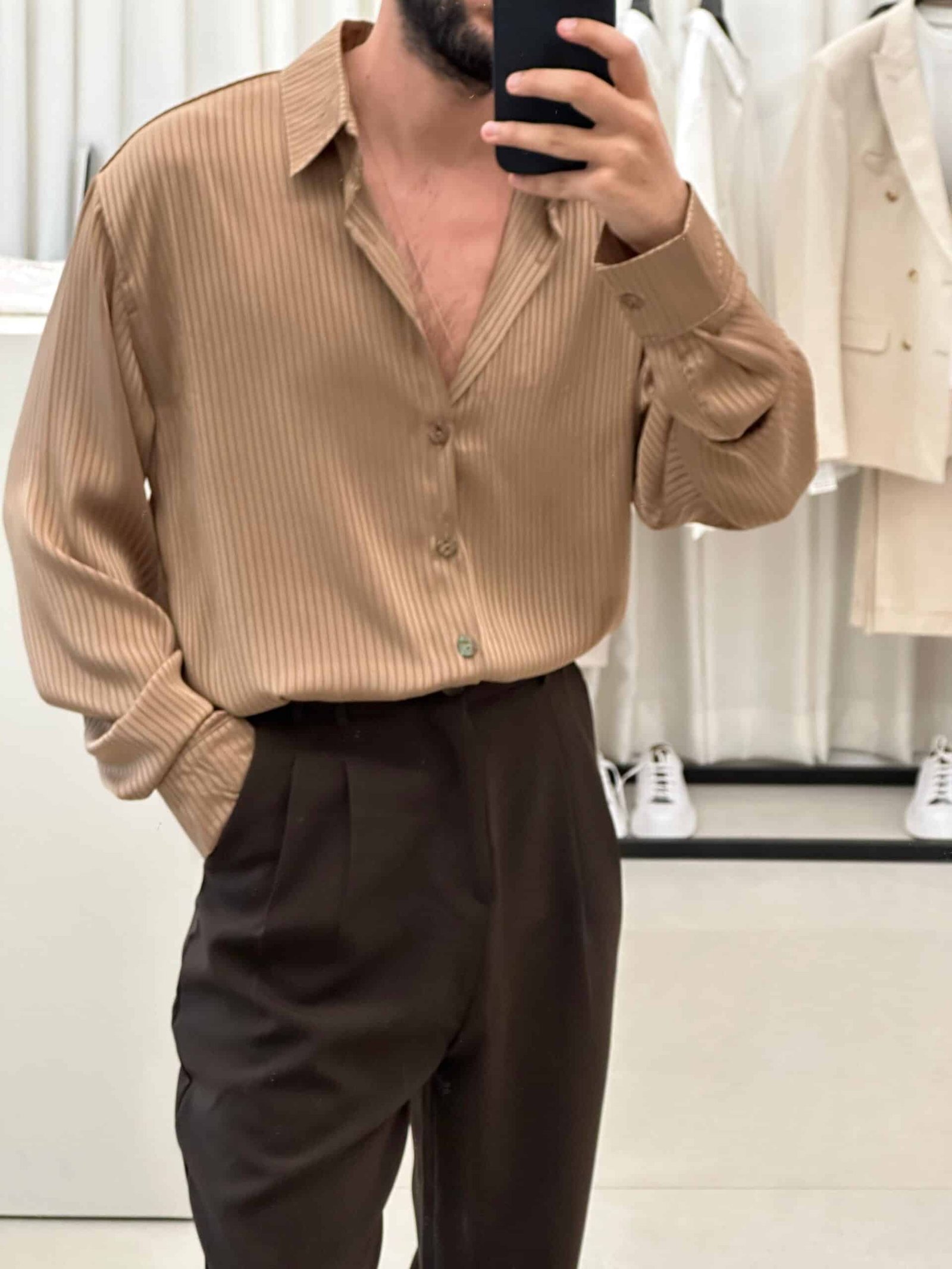 חולצה מכופתרת מבד סטן בתקסטורת פסים