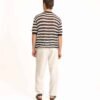 חולצת סריג מבד רשת בשילוב פסים כחול לבן עשויה 100% כותנה