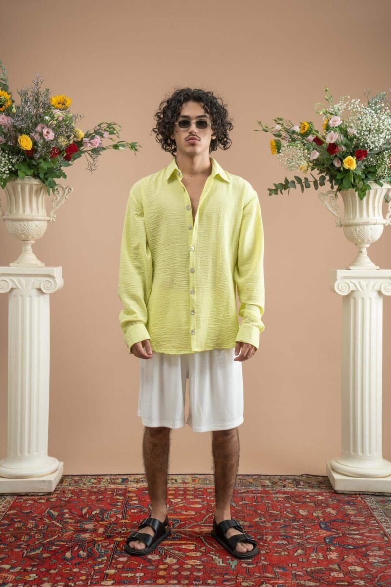 חולצה מכופרת בגזרת אובר סייז במראה פישתני בצבעי נאון